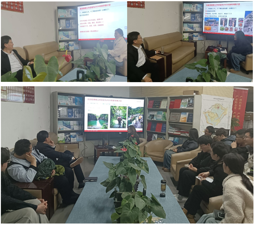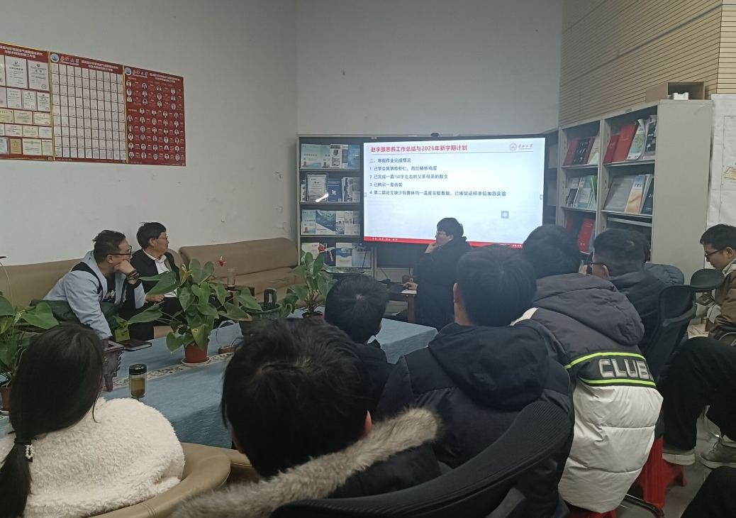 会议伊始,朱院长展示了团队万米深层相关的重大论文投递与送审进展,指出团队成员应明确自身于团队中的定位,积极将个人的成长成才融入进团队的重大项目与课题的工作中。随后,团队参会学生依次进行交流与展示,简要介绍个人寒假的所见所闻,重点展示在寒假期间学习炒菜等生活技能的情况、西装等团队工作必需品的准备情况、论文的推进情况以及个人在2026年的学业与科研目标规划等,并表达出对团队成员在新的一年里能够互相理解、互相支持,勠力同心、迎难而上、勇攀高峰的真切期待。