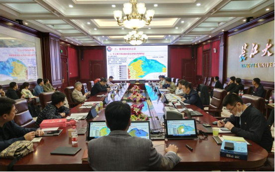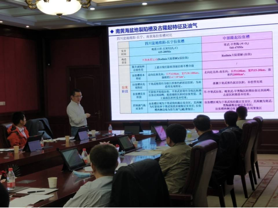 (通讯员韦志浩)2021年4月21日,中海油天津分公司南黄海盆地两个科研项目中期检查验收在石油科技大楼A区多功能会议厅举行。参加会议的有中海油天津分公司研究院李其正院长、牛成民地质总师、杜晓峰首席等专家,中国地质大学(武汉)梅廉夫教授和沈传波教授团队主要成员、伟德国际victor1946何幼斌教授和罗进雄副教授团队的主要成员参加了此次会议。本次会议由中海油天津分公司研究院黄海勘探室杨波主任主持。中国地质大学(武汉)的沈传波教授和伟德国际victor1946的罗进雄副教授分别代表各自团队汇报了项目的研究进展和所取得的阶段性成果。汇报结束后,与会专家充分肯定了两个项目所取得的阶段性成果,同时提出了存在的问题和下一步的工作建议。