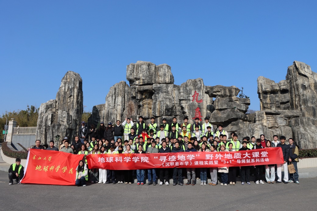 (通讯员:高达)2025年12月26日,岁末冬初,晴空万里,九真山间腊梅暗香浮动。在这充满希望的冬日里,伟德bv1946实验中心党支部联合学院团委、石油系党支部、地质系党支部,携手沉积岩石学教学团队,共同组织了一场别开生面的“寻迹地学”野外实践教学与联合主题党日活动。本次活动中,由胡忠贵、高达、赵娥、陈鹏、罗进雄等14名党员教师带领资源勘查工程专业24级本科生及沉积学方向研究生共100余名同学,走进九真山,开展了一场将野外地质考察、课程思政教育、教学团队建设与党支部主题党日活动深度融合的生动实践。