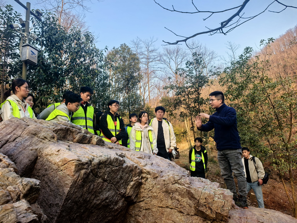 活动伊始,在九真山景区入口,高达老师首先向全体师生介绍了九真山的地质概况与知音文化渊源,并明确了本次野外考察的重点与行程安排。他强调:“野外实践是地质人的必修课。我们要认真对待每一次野外观察,从岩石中读出地球的历史,切实把课堂上学到的理论知识与野外实际结合起来。”