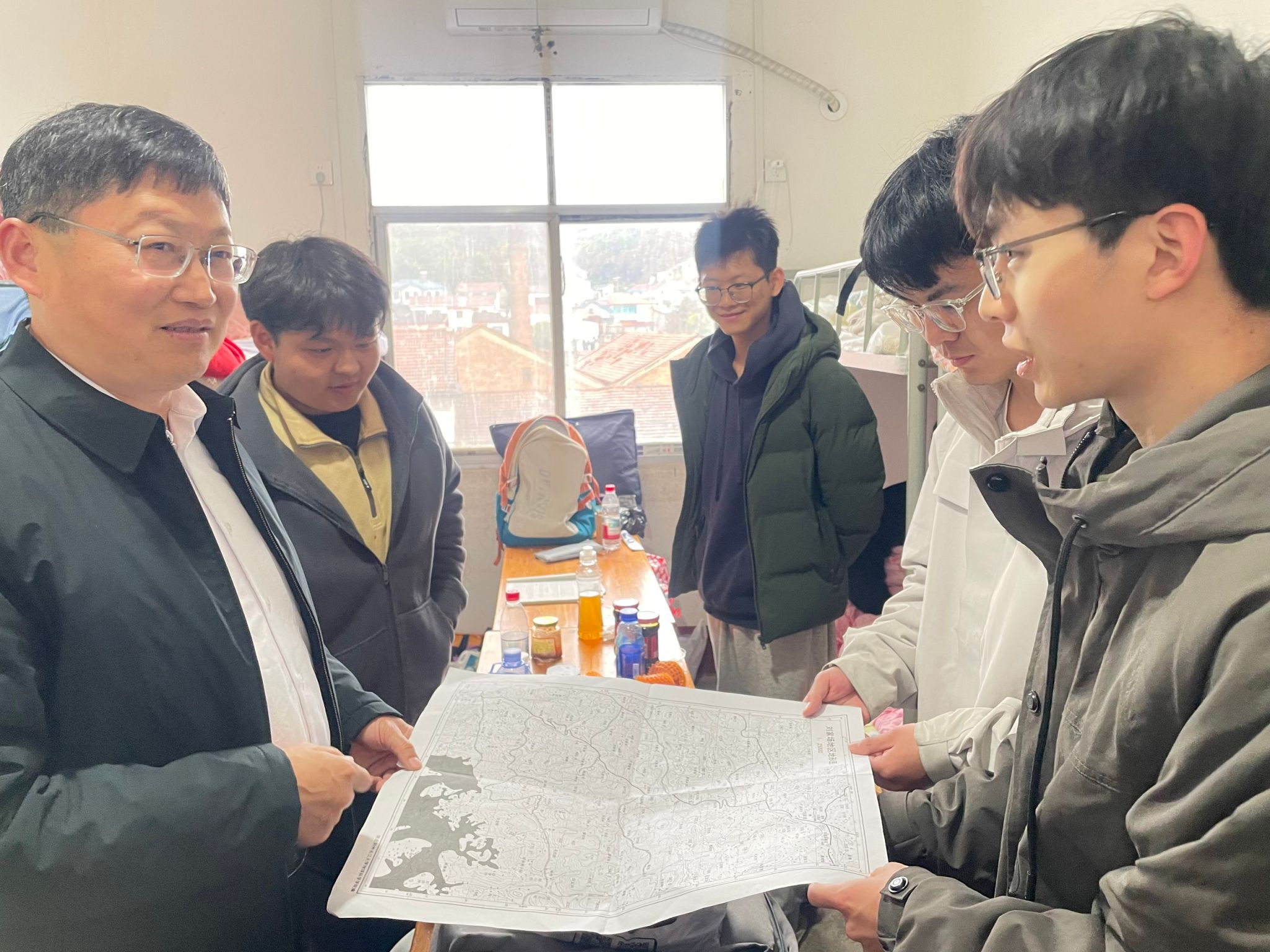 院领导还走进师生宿舍,查看住宿条件,叮嘱大家注意安全,相互关照。副院长李功权关心地询问同学们:“食堂的饭菜合口味吗?晚上睡觉冷不冷?”在与带队教师交流时,副院长胡忠贵强调:“野外实习是地学人才培养的关键环节,既要严格要求,也要倾注关爱。老师们辛苦了,你们是学生最坚实的后盾。”