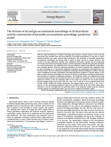 伟德bv19462021级矿产普查与勘探专业博士生刘国文以第一作者身份在SCI期刊《Energy Reports》上发表题为《The division of oil and gasaccumulation assemblage in Sichuan Basin and the construction of favorable accumulation assemblage prediction model》的研究论文,博士生刘国文为论文第一作者,其导师胡望水为论文通讯作者,伟德bv1946为第一完成单位。