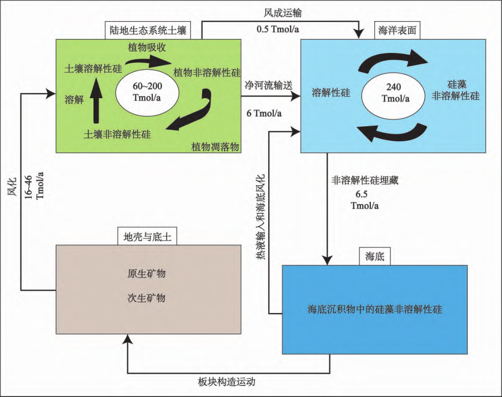 图3 硅的生物地球化学循环图