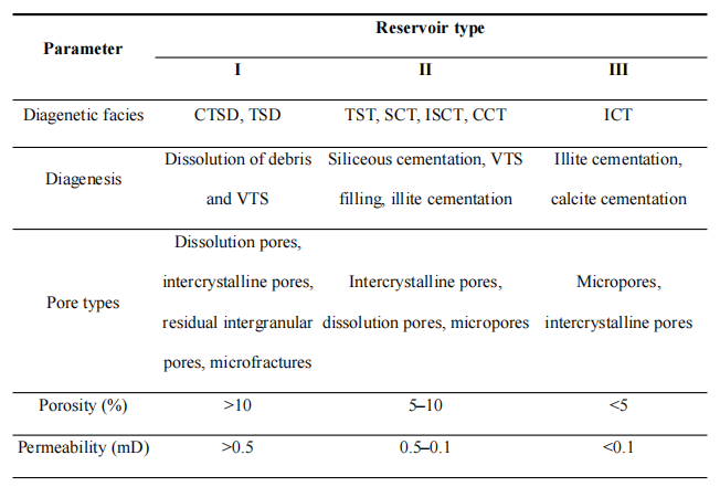 表1 基于成岩相评价的储层类型划分