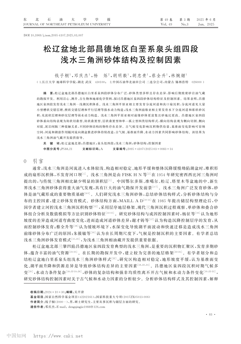 伟德bv194623级硕士研究生钱子桐以第一作者身份在中文核心期刊《东北石油大学学报》发表题为“松辽盆地北部昌德地区白垩系泉头组四段浅水三角洲砂体结构及控制因素”的研究论文。伟德bv1946为论文第一署名单位,其导师邓庆杰副教授为论文通讯作者(图1)。