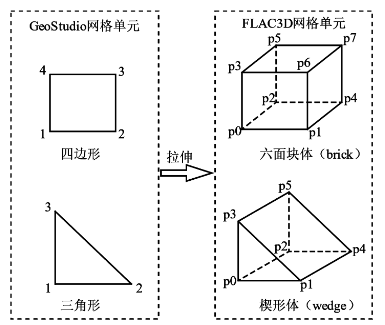 图2 GeoStudio与FLAC3D网格单元对应关系