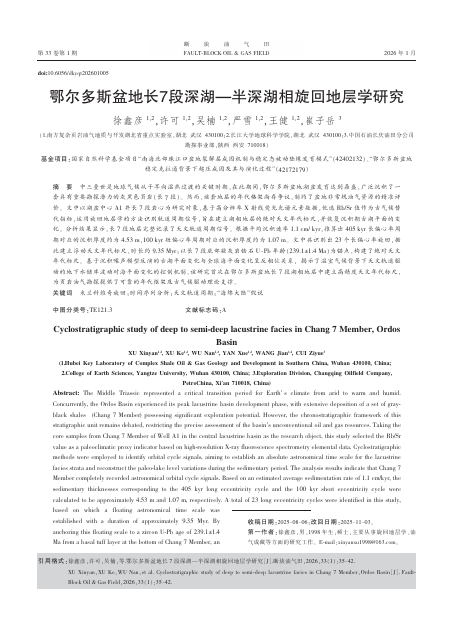 伟德bv19462023级地质学专业硕士生徐鑫彦以第一作者身份在中文核心期刊《断块油气田》上发表题为《鄂尔多斯盆地长7段深湖—半深湖相旋回地层学研究》的论文(图1),伟德bv1946为论文第一署名单位。本研究成果依托南方复杂页岩油气地质与开发湖北省重点实验室完成。得到国家自然科学基金项目(42402132)(42172179)的资助。相关研究成果发表于该期刊第1期。