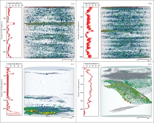 图2 古龙凹陷青一段不同岩石相三维球棒连通率模型