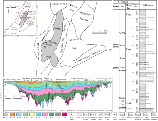 图1 古龙凹陷青一段区域地质背景及地层柱状图