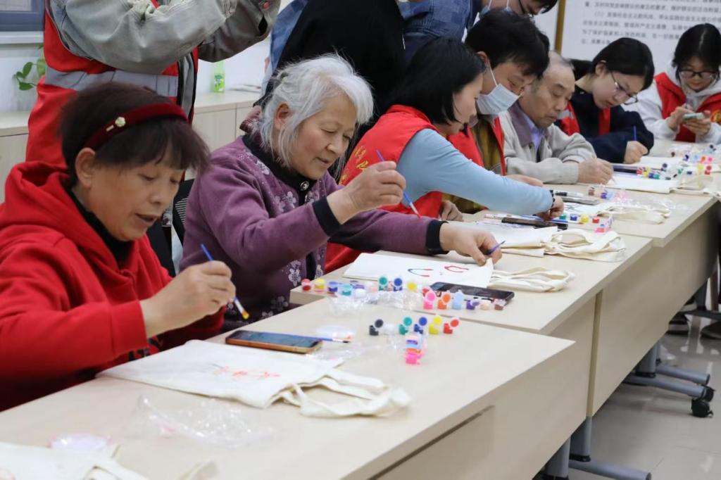 (通讯员 熊婷 熊婷/摄)为倡导环保理念,丰富社区居民文化生活,3月27日下午,我院与传媒学院联合高湖社区,共同举办了“绿绘高湖 志愿同行”环保袋绘画活动。此次活动以创意绘画为载体,通过手绘环保袋的形式,传递绿色生活理念,吸引了社区老年朋友及志愿者们的积极参与。