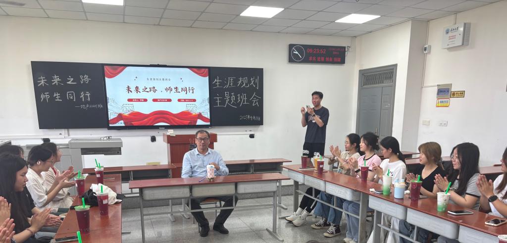 (通讯员梁浩/文 黄乐源/摄)4月18日下午,伟德bv1946地信(产业) 22201 班在武教 A-402教室举办了主题为“师生之路 未来同行”的“导师进班会”活动。李功权教授通过深度解析GIS学科前沿与行业趋势,助力学生锚定发展方向。活动由地信(产业) 22201 班班长齐缘主持。