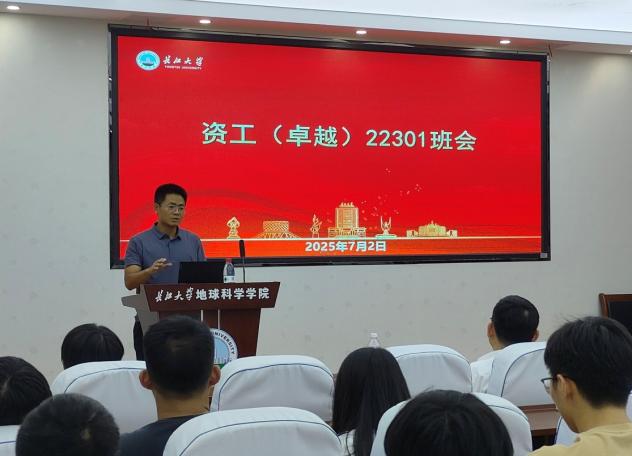 班会伊始,朱光有院长就开宗明义地指出:"同学们要牢记,地质人的脚步永远向着远方,但根基必须扎在当下。资源勘查工程是艰苦专业,但更是充满机遇的领域。看到你们这一学期在学业、科研、实践等方面取得的进步,我深感欣慰。"同时强调:"专业素养是立身之本,英语能力是发展之翼,希望同学们继续保持这种全面发展的良好态势。"