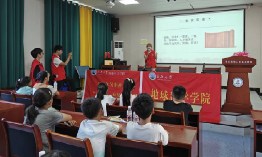 科普课则聚焦地质常识,为孩子们打开探索自然奥秘的大门。志愿者储思佳借助生动的图片、直观的模型和简单易懂的实验,深入浅出地讲解地球的内部结构、岩石的种类与形成过程,以及古生物等地质常识。