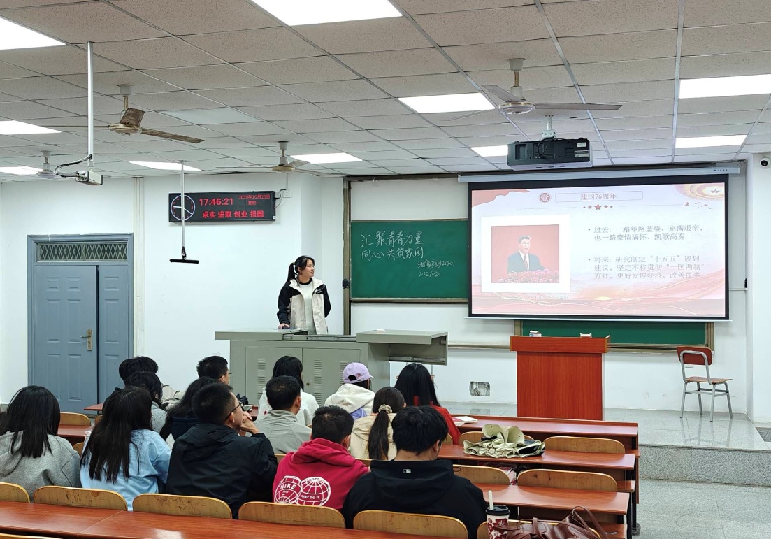 活动开始,团支部书记介绍活动背景、目的及流程,强调“汇聚青春力量,同心共筑家园”主题团会的重大意义。接着带领团员学习习近平总书记在庆祝中华人民共和国成立76周年招待会上的讲话、《求是》杂志相关文章等内容,各小组围绕“国家发展与青年责任”展开研讨,团员代表结合专业分享感悟,深化对中华民族共同体的理解。地产22401班倪浩然同学说:“作为新时代青年,我们要将个人理想融入到国家发展之中,学好本专业,担当起新时代的责任”。