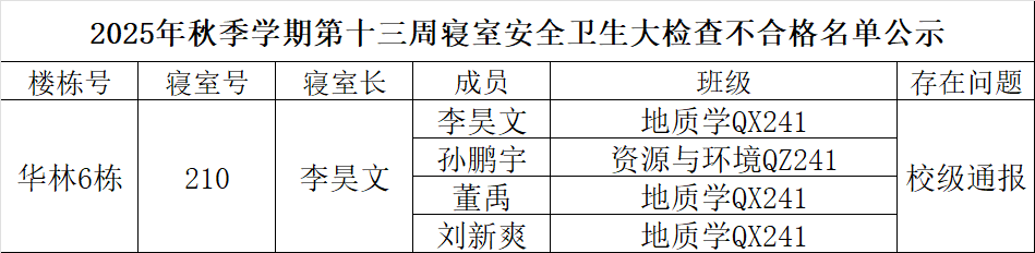 二、通报不合格寝室
