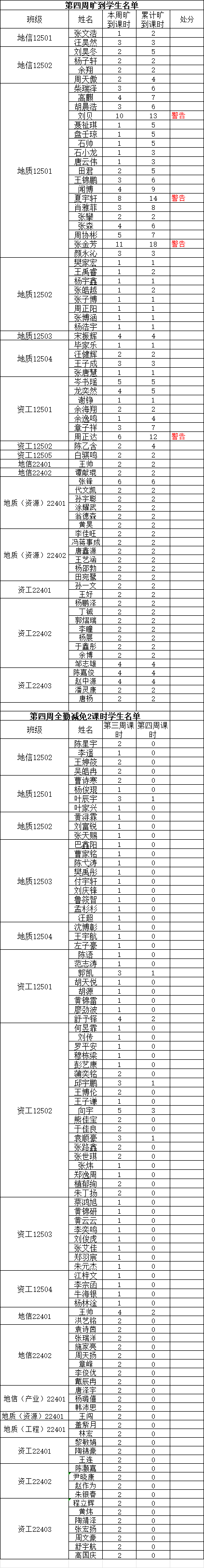 为落实学院关于加强学风建设的相关要求,进一步规范课堂秩序,营造良好的学习氛围,我院持续开展常态化课堂考勤工作。现将第四周考勤情况通报如下: