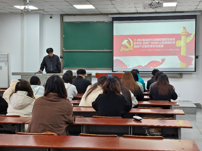 学习结束后,杨青青同学对研会近期工作进行了总结,并对下一阶段重点工作作出安排。她希望全体研会成员持续加强理论学习,自觉将先进思想融入日常工作中,紧紧围绕学校发展大局,认真做好服务同学的各项工作,为学校高质量发展和一流学科建设贡献研会的一份力量。